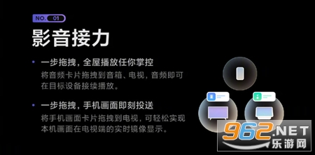 2.在手机、或平板上,将手机画面卡片、或平板画面卡片拖拽到电视上,可享受电视投屏。在手机上,可将手机画面卡片拖拽到平板、电脑,实现跨屏协作。