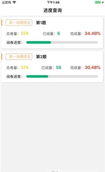 2、实时记录教师的阅卷进度,同时可以查看其他教师的评阅进度。