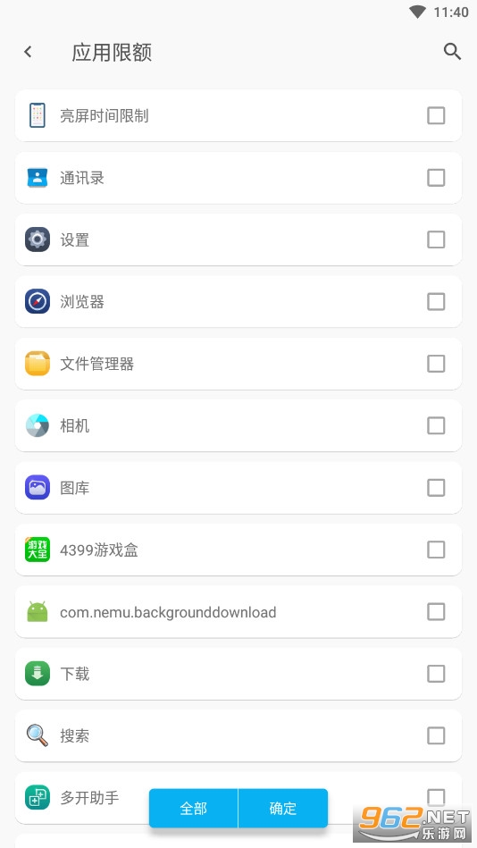 《应用限额安卓》是一款非常好用的软件,软件可以给各种应用设置限额,让你能够有节制的使用手机,设置各种软件的限额也会给你自己起到提醒的作用,提升你的自制力,摆脱对手机的依赖心理,也方便家长对孩子玩游戏的时间进行管理。有需求的话就快来下载吧!
