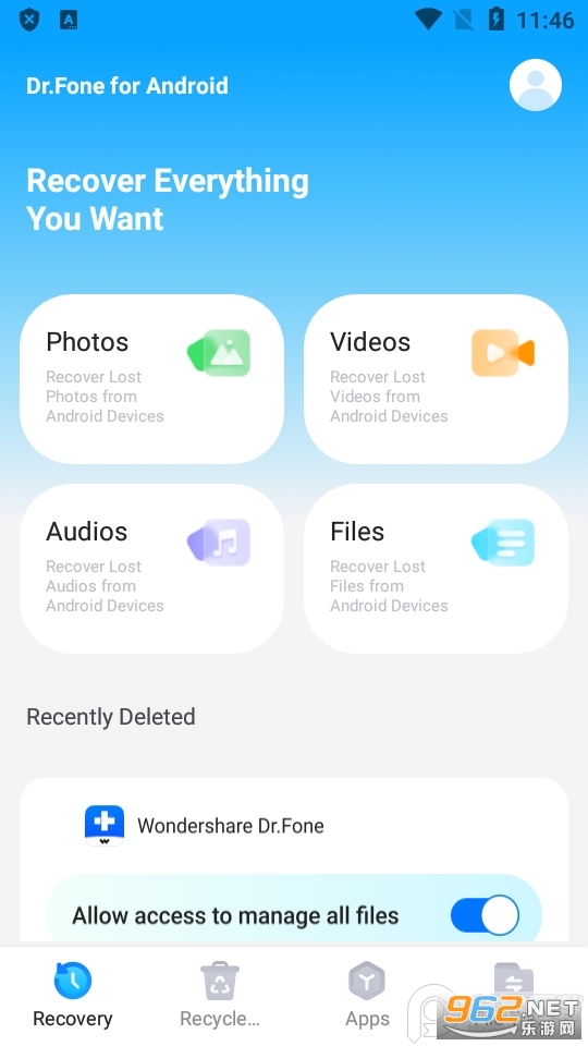 国外很专业的一款手机数据恢复工具,Dr.Fone数据恢复手机版是个专业版本,拥有很强大的恢复功能,轻松恢复手机上的照片,视频,音频等文件,还有聊天数据恢复,有需要的可直接下载哟!