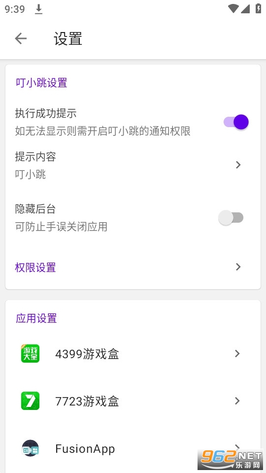 1打开软件,可以看见软件页面比较简洁,然后我们开始给软件授权,先点击通用设置,权限设置,需要把无障碍权限开启,然后自动启动模式也需要开启,再给后台任务中锁定一下叮小跳。