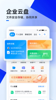 非常好用的企业云盘,功能强大,轻松的对文件进行存储,支持协同共享,直接通过企业通讯录进行跨部门找人,用起来很方便,快来下载吧!