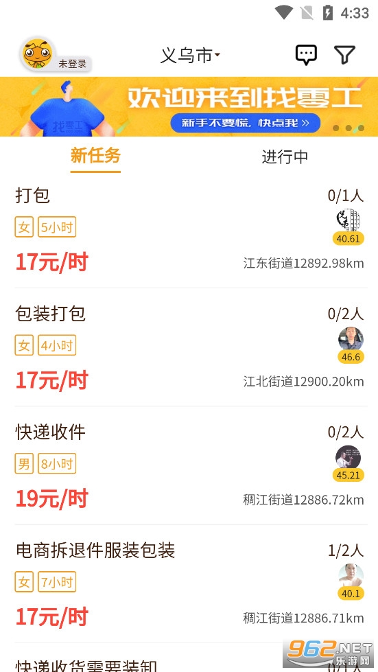可以找零工的平台,可以选择地区后去寻找各种各样的零工,需要注意目前软件还没有全面开放,只适合浙江金华地区的朋友们使用,有需要的朋友可以下载试试。