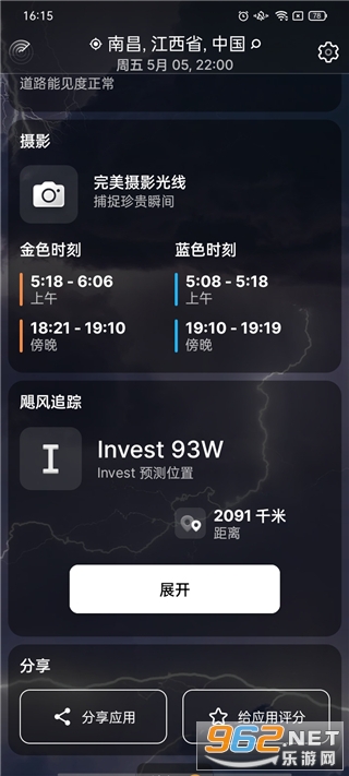 3、飓风跟踪,显示飓风等级和到地点的距离。
