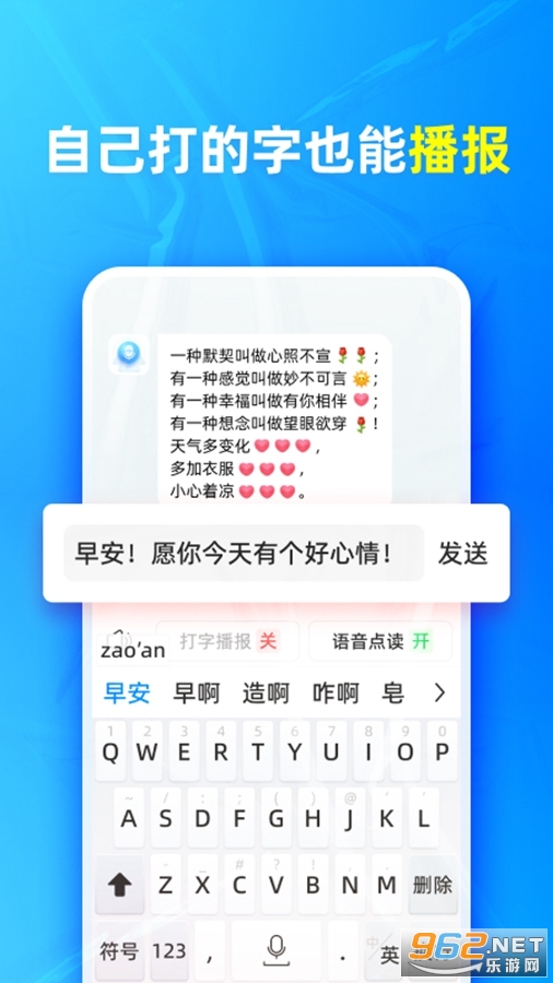 实用的手机输入法软件,支持各种方言语音输入,可以播报对方和自己输入的文字,还可以拍照进行播报,可以设置各种播放语音声音类型,有需要的朋友可以下载试试。