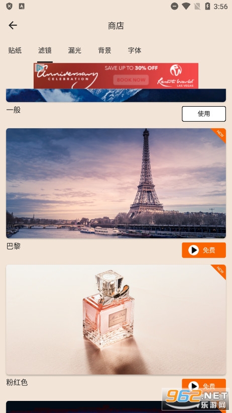 使用 130 多种效果(巴黎、清新、粉色、漏光、旧照片图案、模拟胶片等)编辑照片,使用 10 多种专业图像工具编辑照片。