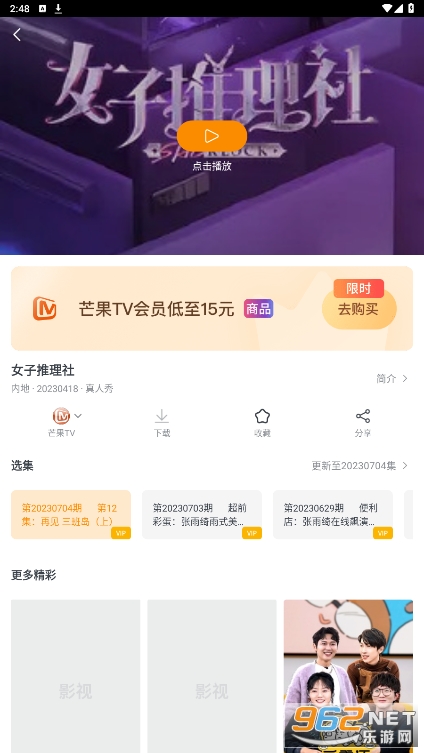 2、找到想要收藏的剧集之后,进入播放页面,点击其中的收藏选项;