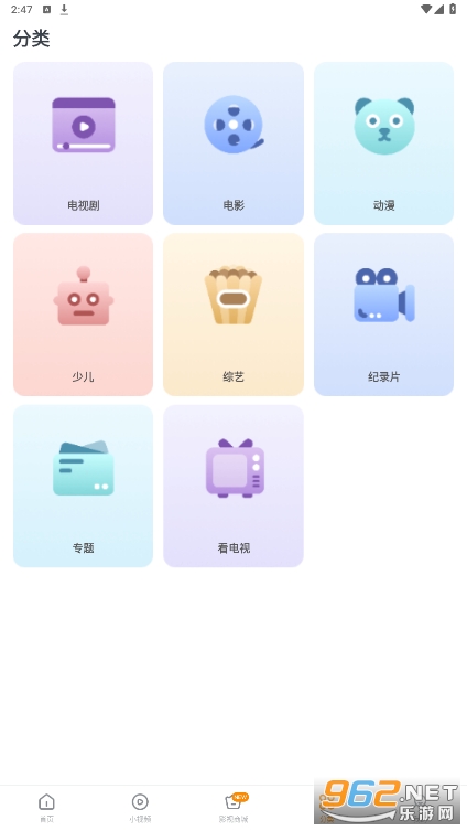 1、通过底部菜单栏进入快看影视大全APP分类版块,根据需求选择类型;