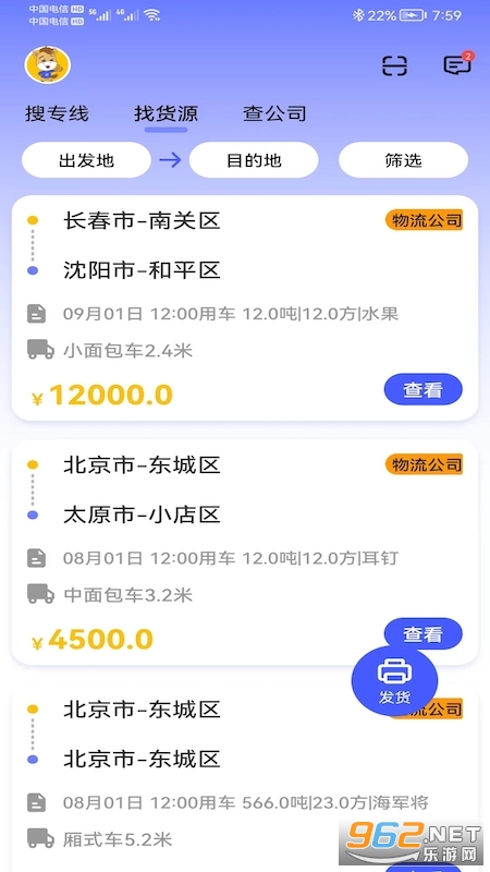 拥有全国各地专线物流公司及货车车主入驻: 实名认证,真实可靠,大平台、有保障