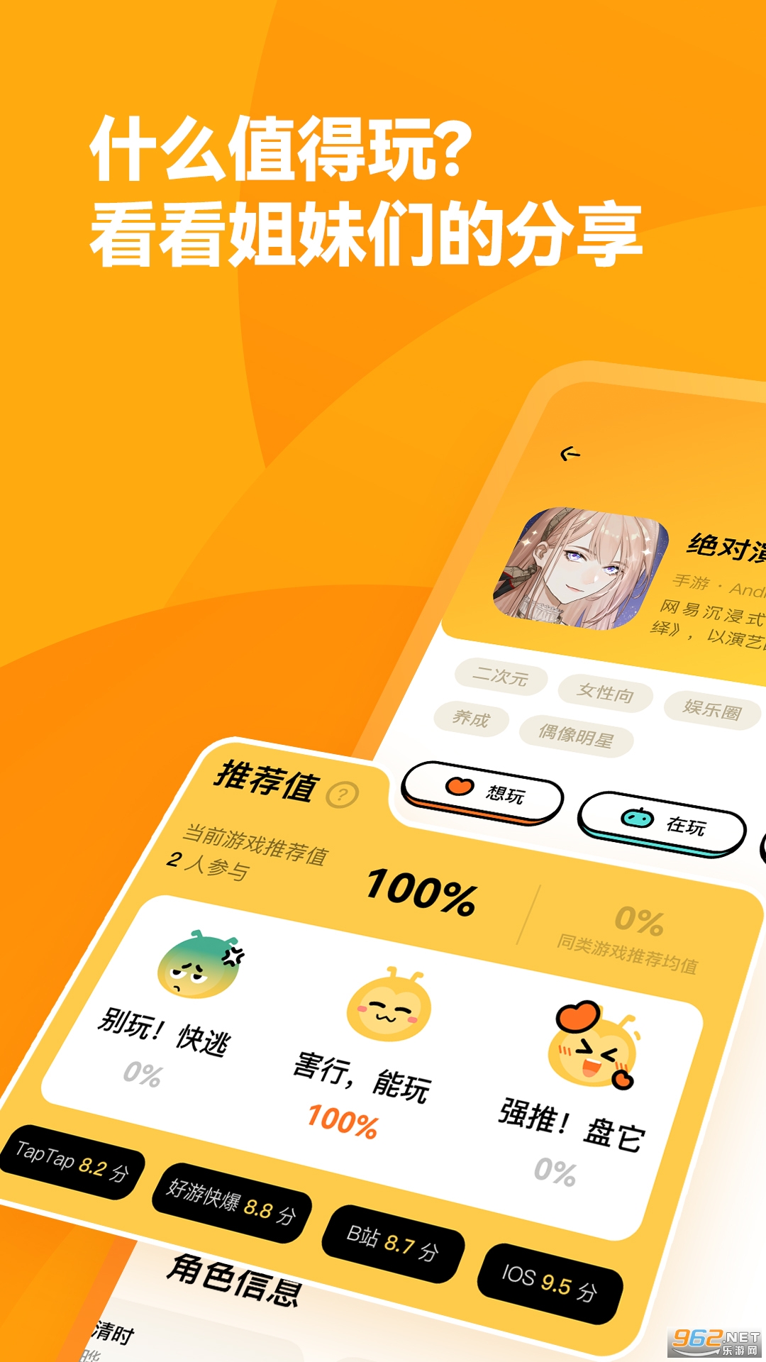 在这里,能看到同好姐妹们对游戏的「推荐值」和「推荐短评」,以及针对画面、剧情、CV、玩法等多重维度出发的细致「测评」。所有游戏的长板和短板都一目了然,每一份测评,都来自姐妹们真情实感的体验。