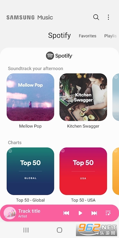 5.三星音乐显示Spotify播放列表的推荐。您可以通过 Spotify 选项卡找到 Spotify 推荐音乐并搜索您喜欢的 Spotify 音乐。