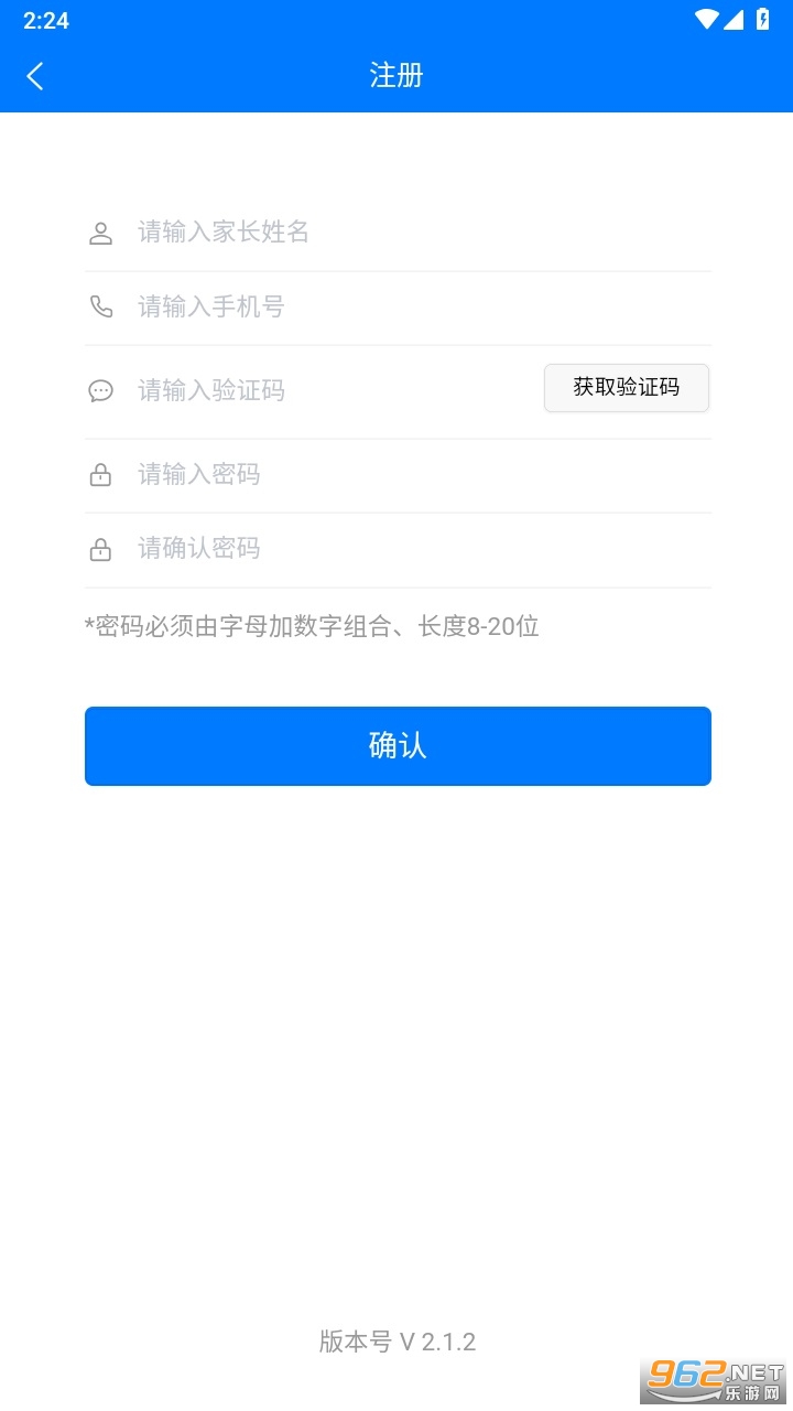 输入家长姓名、家长手机号码,点击获取验证码,手机会收到系统发送的验证码,输入获取的验证码和密码点击注册。