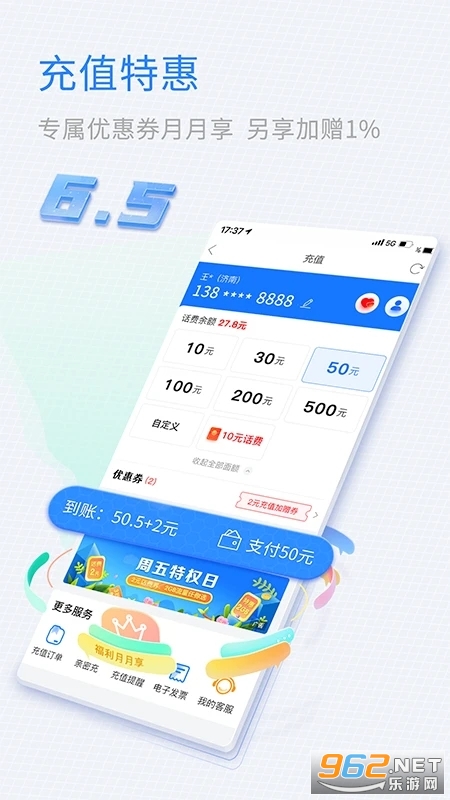2、随时满足您的移动业务查询和办理需求,独享的话费充值优惠