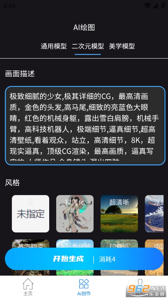 非常好用的ai绘画类的手机软件,输入文字就能够直接进行创作,可以轻松的打造各种你喜欢的图片,生成的图片的类型多种多样,实用性强。快来下载吧!