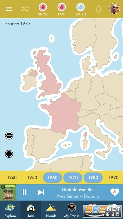 世界音乐的时光机这个APP收录了世界各地关于音乐的记忆,您只要在Radiooooo界面选择好地区和时间后就可以聆听那时该地群众最喜欢的歌曲。在旅行中品味世界各地的老音乐,回味旧时光的美好记忆。