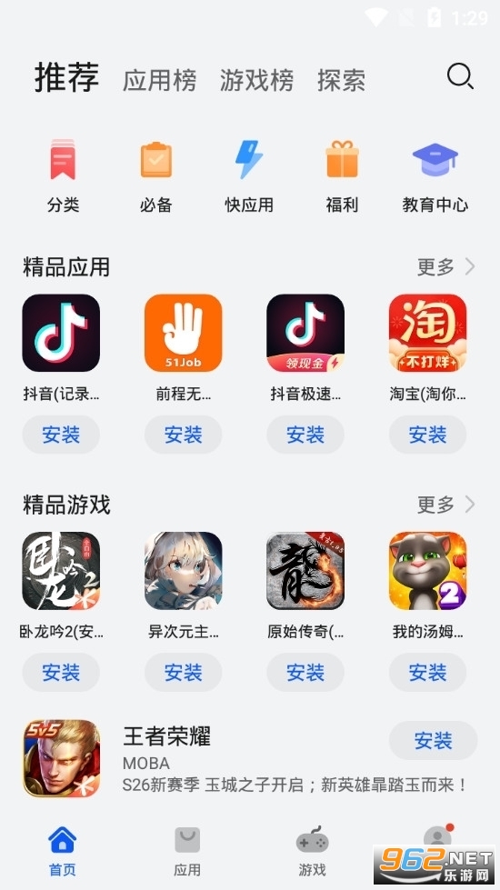 2、必备的软件和游戏专区中可以寻找精品,能够极速的进行下载。