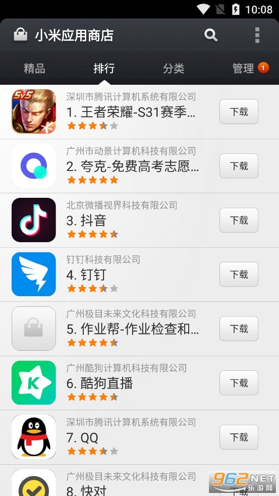 排行:根据下载量的排行榜单,没有刷榜的真实榜单