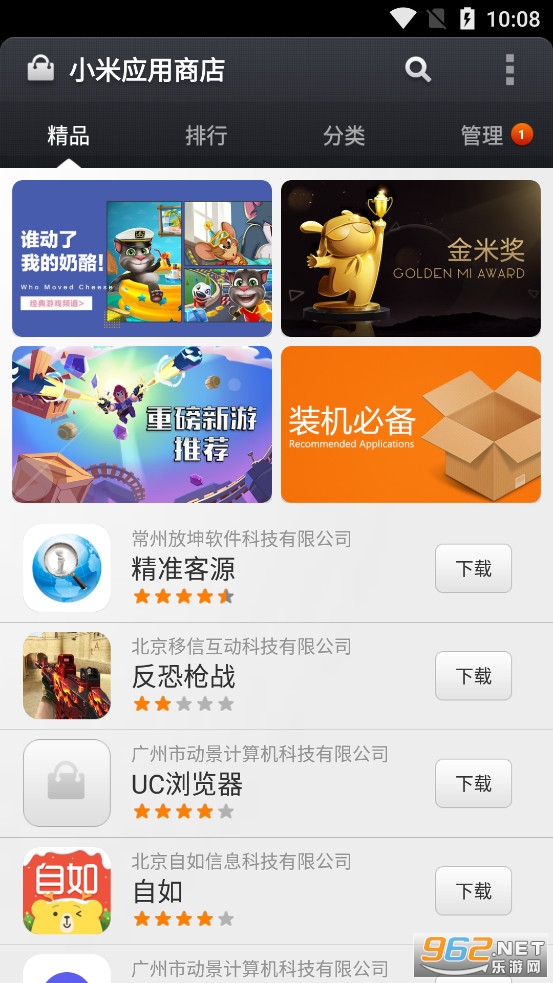 精品:精选的软件与游戏,更有各种专题帮你发现同类应用游戏