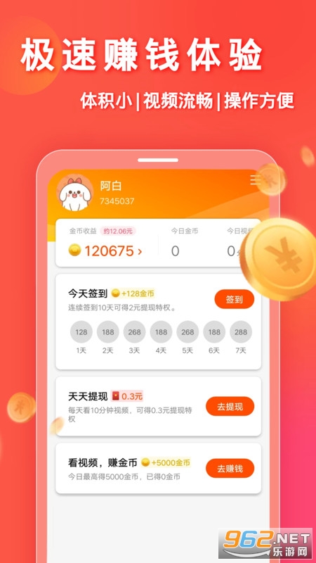 4、看视频赚金币,满额当天能提现