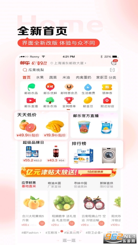 《邮乐购app推广》是一款电商购物平台,旨在为广大用户提供便捷、优质的购物体验。邮乐购app的定位为“让购物变得更加简单”,致力于通过技术创新和卓越服务来满足用户的需求。提供了丰富的商品种类,涵盖了数码家电、美妆个护、食品保健、服装鞋包等众多品类。