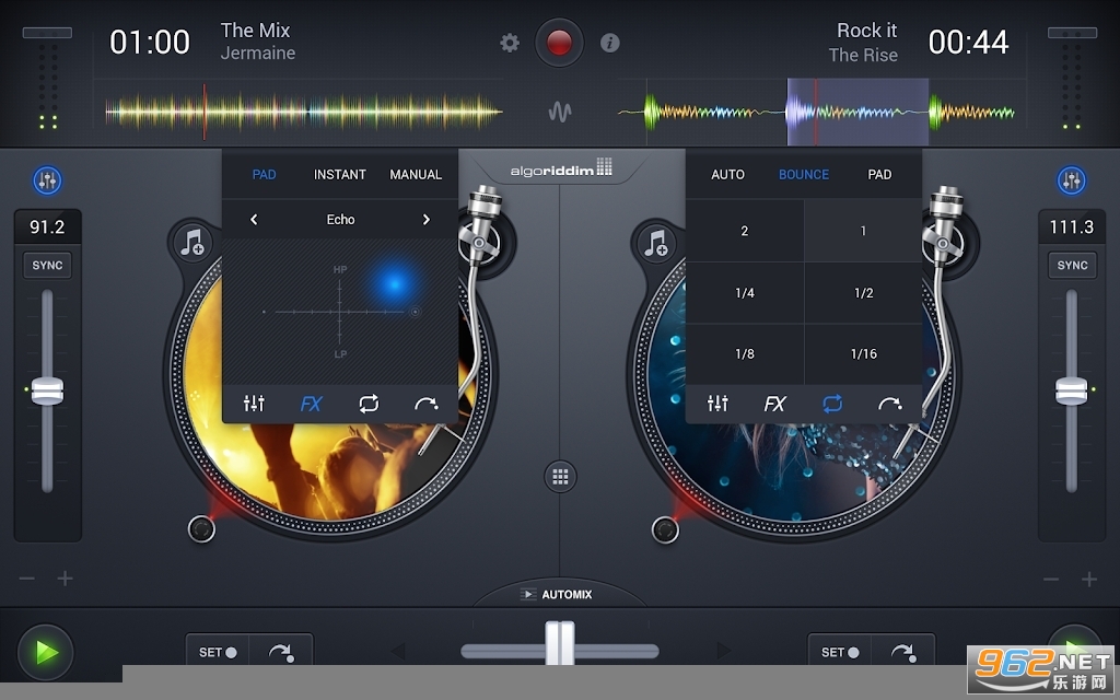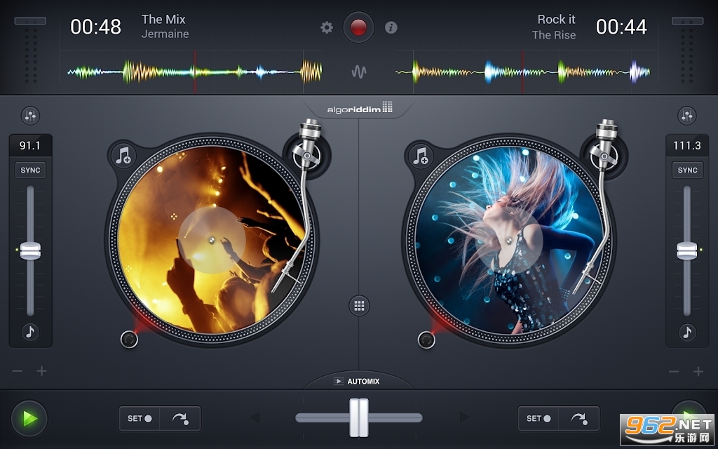 手机打碟软件djay2是一款相当专业双盘DJ打碟机模拟器,免费提供12种高品质声效,9种变音特效,独有的双黑胶盘界面,支持滑动打碟,变速调节,节拍同步等一系列功能,让你享受成为dj打碟大师的乐趣过程体验。