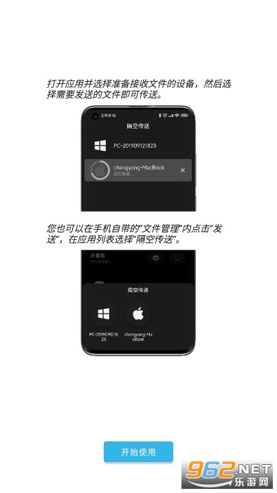 3、然后打开应用并选择准备接受文件的设备,然后选择需要发送的文件即可开始传送。