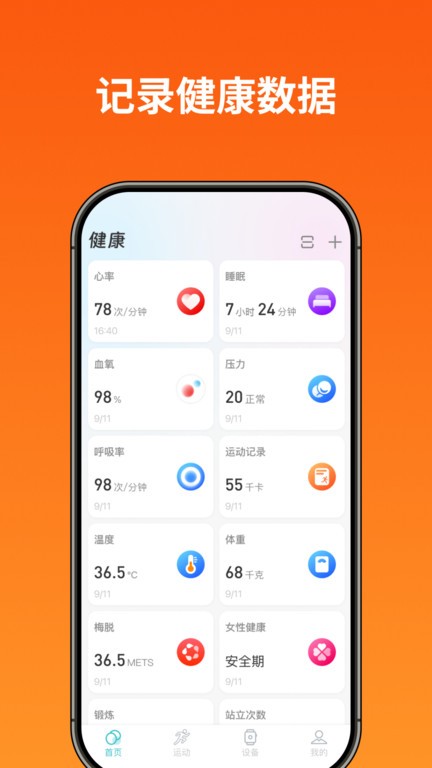 健康数据检测,实时记录运动、心率、压力等健康数据