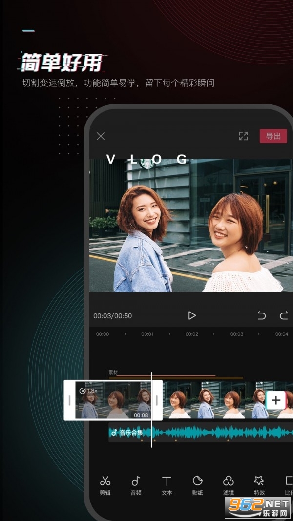 一款好用的抖音视频剪辑创作软件,在这款软件中有着非常丰富的功能和曲库,你可以自由的进行使用,同时还有着专业多变的滤镜,你可以快速拍摄和制作出想要的视频。也可以将视频特效去除,推荐给有需要的用户。