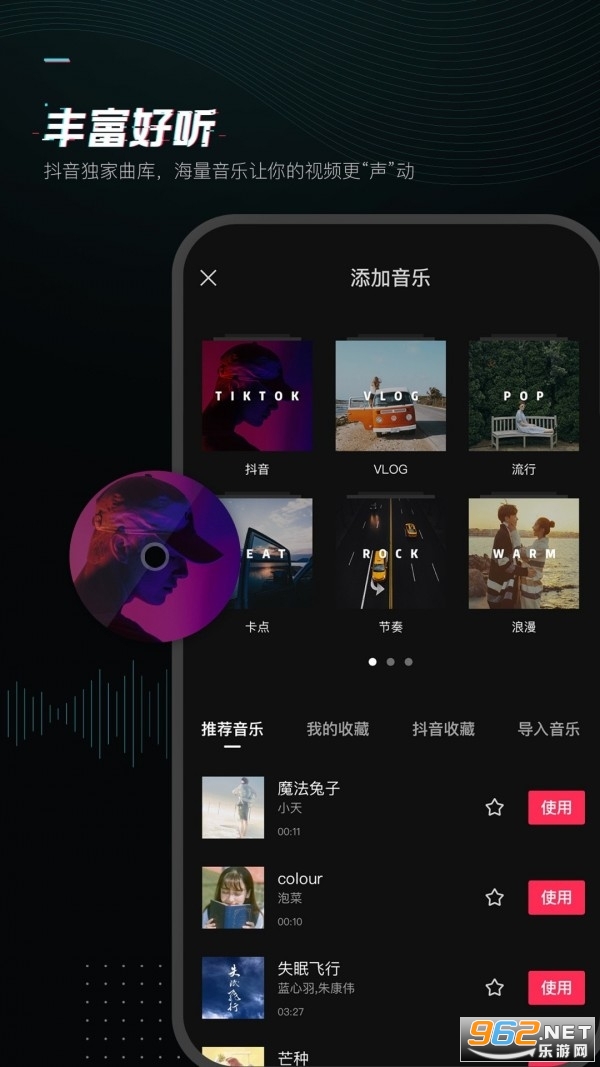 抖音独家曲库,海量音乐让你的视频更“声”动。