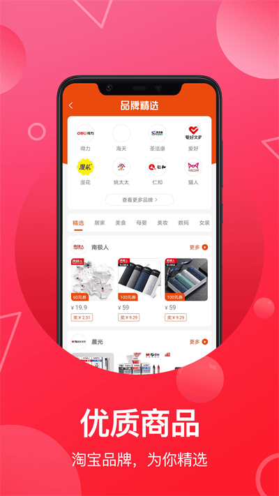 超级返利、品牌特卖、九块九包邮,底价+超高返利+返利保障。