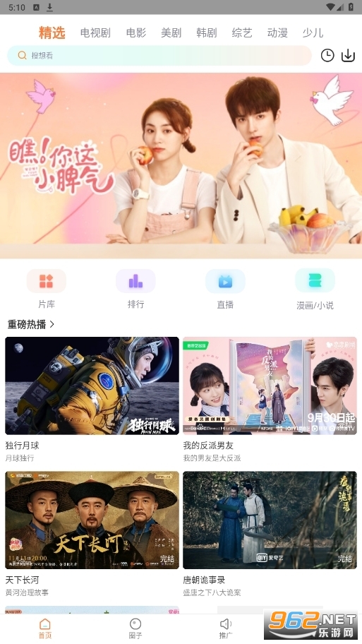 5.进入软件首页,你可以直接转过来看为你推送的超级精彩剧集。