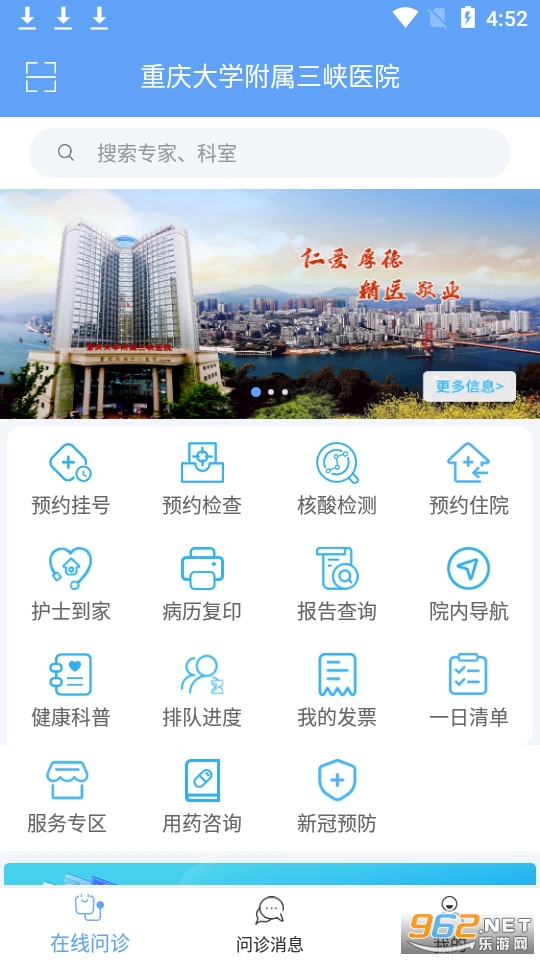 《三峡医院app》是重庆大学附属医院,是当地的一个三甲医院。三峡医院app帮助大家可以在线问诊,远程预约挂号,解决了您身边的看病就医排队等麻烦,让您在这里有更加便捷的生活方式,下面就是小编为大家带来的软件下载地址!