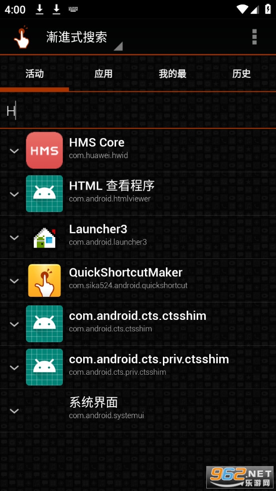 此应用程序可以从您手机上安装的活动列表创建一个应用程序的快捷方式。