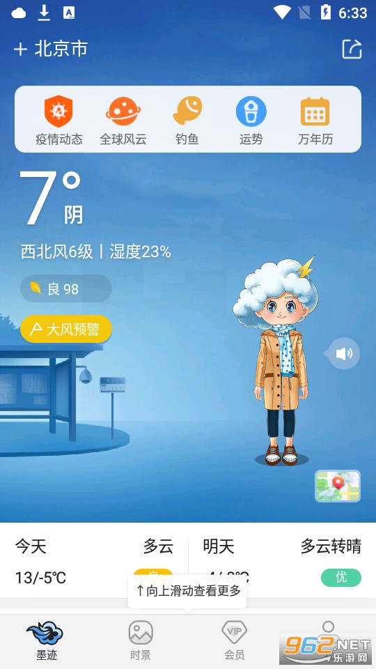 非常专业的一款实时对天气进行查询的软件,不仅会及时的对天气进行更新,还会为用户推荐关于洗车穿衣等相关的建议等,支持查询空气质量,有很多好用的生活小工具,快来下载吧!