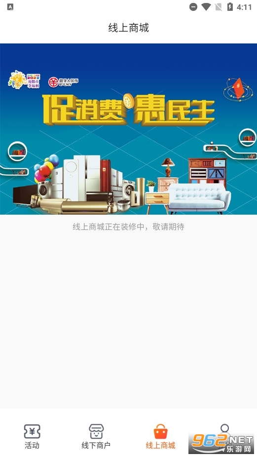 雄安新区数字人民币促消费活动官方平台。可在APP中根据规则领取家电、家具、商超、餐饮四大场景的数字人民币满减消费券,领券前需确保您已安装数字人民币APP并提前开通至少一个实名制(三类、二类或一类)数字人民币钱包,在本平台上完成实名制核验确定符合参与活动条件后即可领券。使用消费券前需根据指引完成钱包快付功能的开通,之后可在参与促消费活动的线下商户通过“扫一扫”或“付钱码”功能完成支付,支付时可选择消费券进行抵扣。