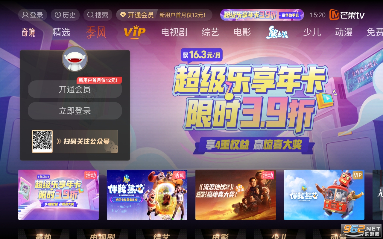 《芒果tv会员电视端免费版》是一款为电视端用户提供的网络视频播放软件,汇集了芒果TV最精彩、最具代表的热播节目,包括《我是歌手3》、《快乐大本营》、《天天向上》等一线综艺,以及《武媚娘传奇》、《只因单身在一起》等众多芒果好剧。