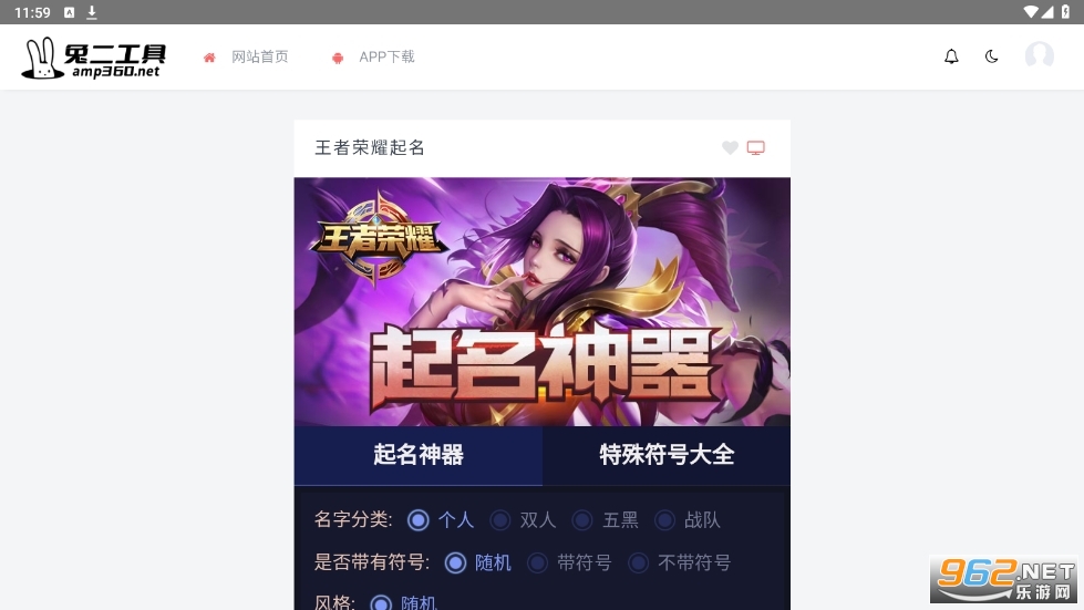 3、支持各种娱乐游戏起名,一键帮助你的王者起名,不管是超长名字还是重复名字和花纹名都能满足你的需求