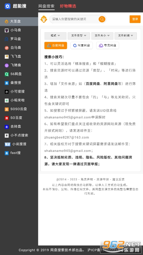《超能搜网盘搜索神器》是一款能够帮助用户快速搜索各种网盘资源的工具软件。它支持百度云、360云盘、华为网盘等多家知名网盘平台,也支持大圣盘,小马盘,罗马盘,白马盘,飞飞盘等众多好用的网盘搜索,操作简单,输入你想要搜索的关键词,即可快速找到相应的资源。