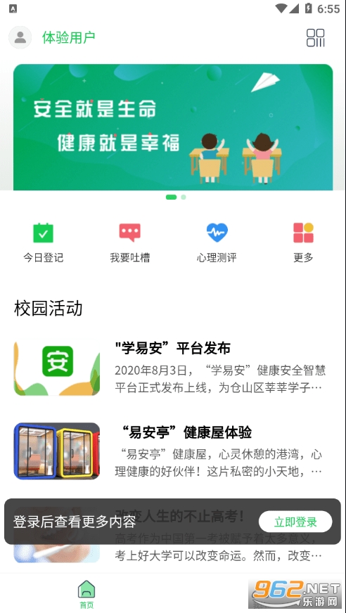 《学易安手机版》是一款在线教育学习软件,为学校,老师,家长,学生提供专业的健康管理,安全管理,健康安全教育三大服务,让老师,家长可以通过此平台全面了解学生的健康状况,帮助学校排查学校安全隐患,管理学生,提高学生的安全意识,促进学生健康快乐成长!