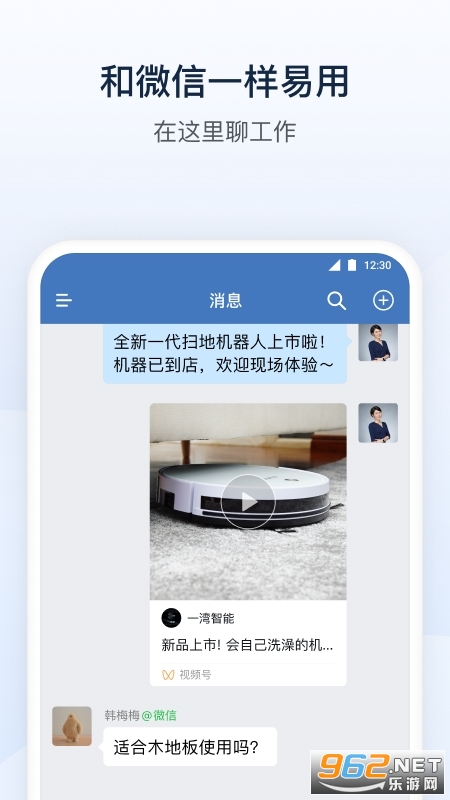 支持免费网络电话、语音对讲、位置定位发送、电子名片交换、语音识别输入等强大的富媒体消息,独特的工作流消息处理机制,让您的工作协同更高效