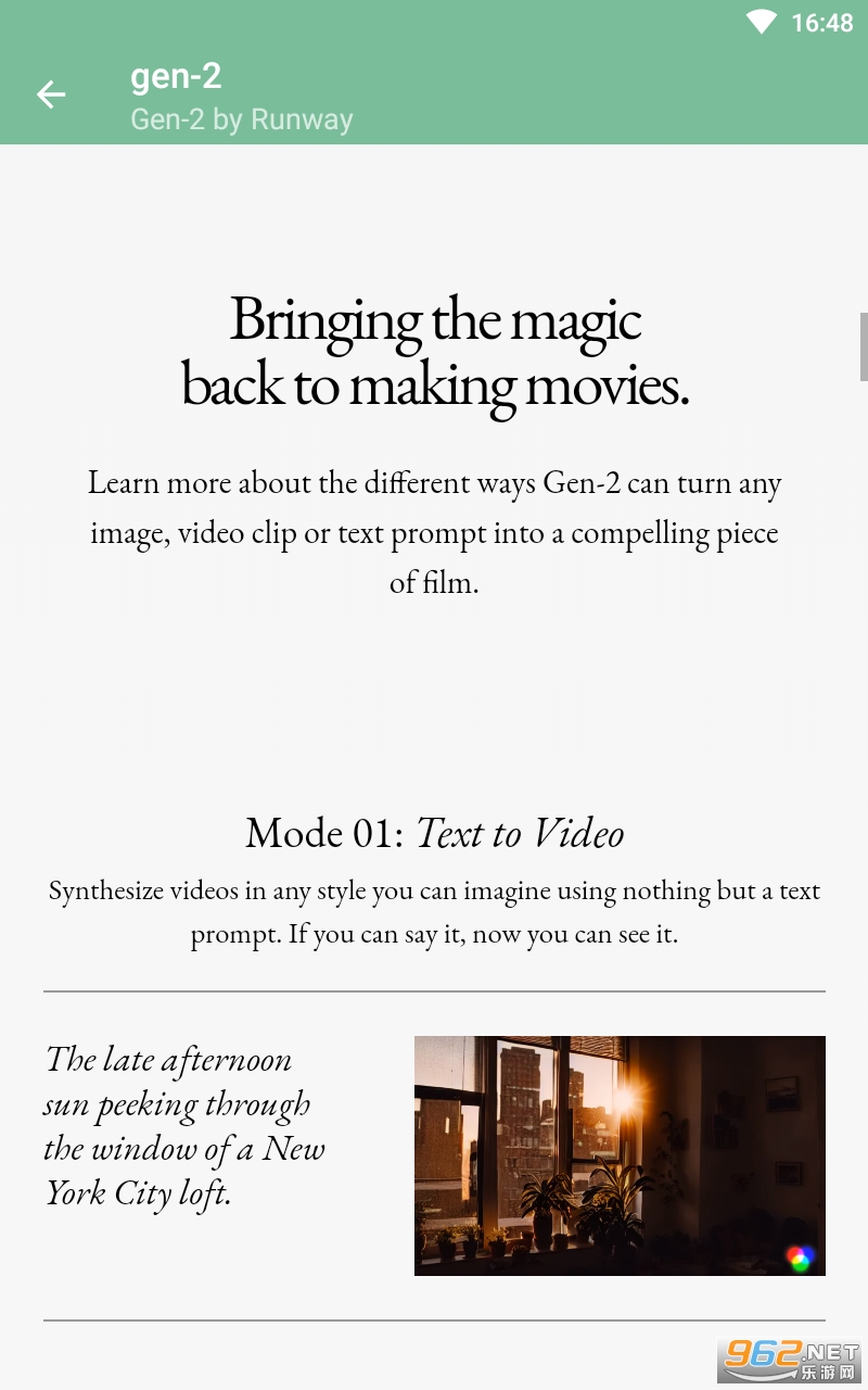 《gen-2 ai app》是一款用起来非常不错的ai视频生成工具,通过文字、图片以及提示词可以非常快速的生成你想要的视频,用法也还是很简单的,操作起来给人的感觉也是很不错的,有着比同类型视频生成工具更加强大的功能,感兴趣的亲们赶紧下载吧。