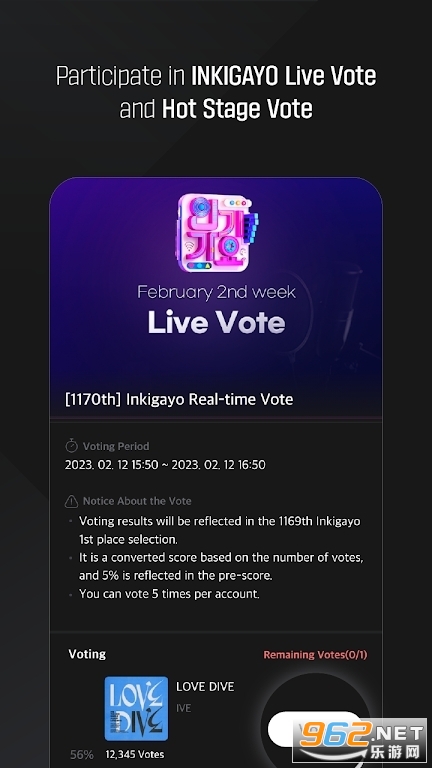 您通过SuperStar X参与的投票将计入SBS人气歌谣的NO.1 OF THE WEEK票数。参加每周一次的 SBS INKIGAYO 现场投票,为您的 Super Stars 加油。