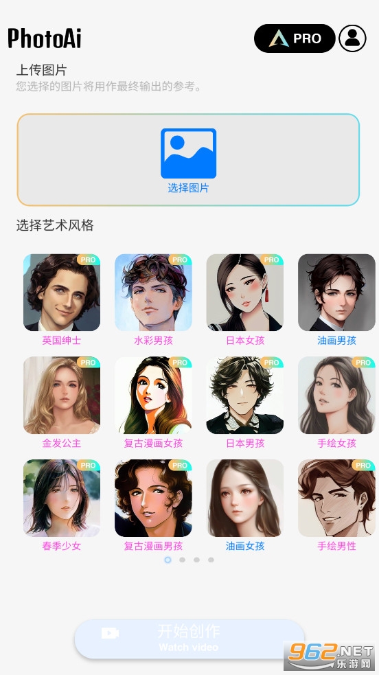 《Photo AI专业版》是一款为朋友们制作的以图绘图的AI绘画软件,朋友们可以利用Photo AI来制作各种各样的精美图片,朋友们可以通过相机拍摄或者上传一张本地图片,然后选择油画、漫画、复古、水彩等各种不同的风格,然后点击创作即可获得图片。
