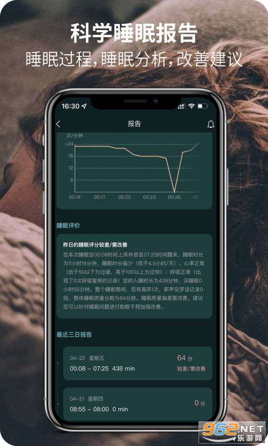 《桑果智+app》是一款为朋友们打造的睡眠质量监测软件,可以通过软件来监测自己每天的睡眠情况,可以查看睡眠质量说明,查看睡眠质量图形走势图,查看历史睡眠记录等,可以记录你的鼾声、梦话等。