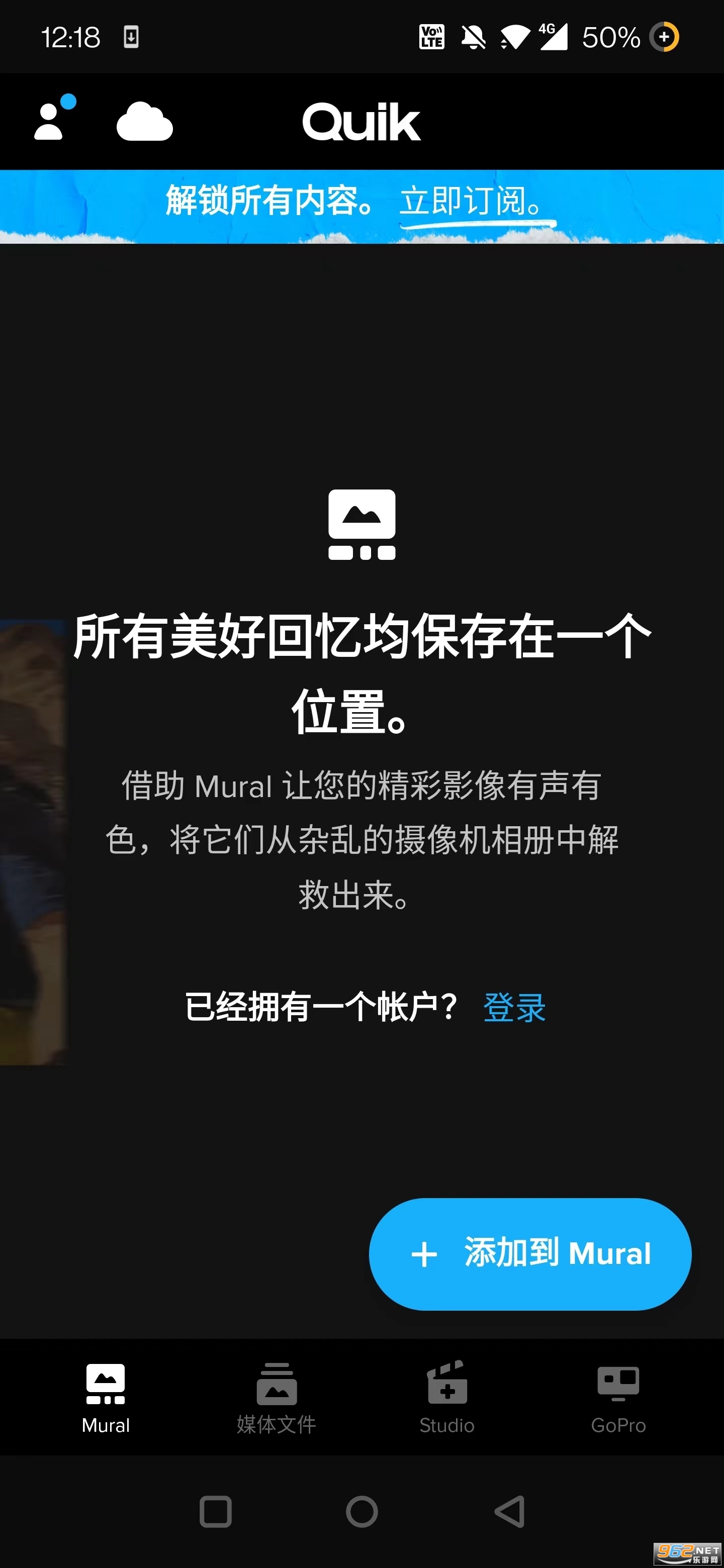 Quik 订阅为你提供完整画质的无限量 Mural 备份。GoPro 摄像机用户可以通过 GoPro 订阅将所有应用程序媒体文件进行完整 *plus* 备份。[3]