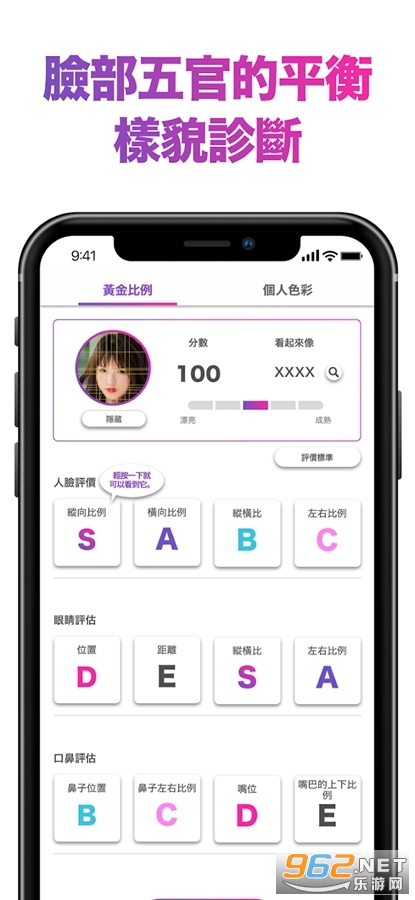 程式会对你的脸部轮郭、眼睛、鼻子和口部等五官进行评分。