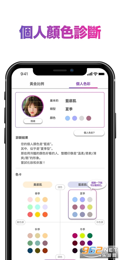 同时亦可以判断最适合你的化妆和衣服配搭颜色。