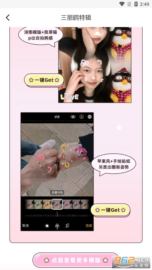 RiZa Cam是一款具有众多功能的优秀修图软件。该软件提供自定义背景选择,如初始颜色和渐变颜色。可以自由添加图案、纹理等。并自由调整模糊参数。还有各种可爱百搭的贴纸,可以免费添加使用。该软件还提供了各种边框和拼图模板。