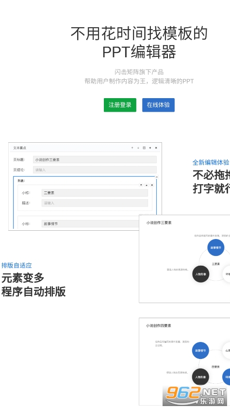 闪击矩阵旗下产品,帮助用户制作内容为王,逻辑清晰的PPT,不用花时间找模板的PPT编辑器,助你告别制作繁琐的PPT~