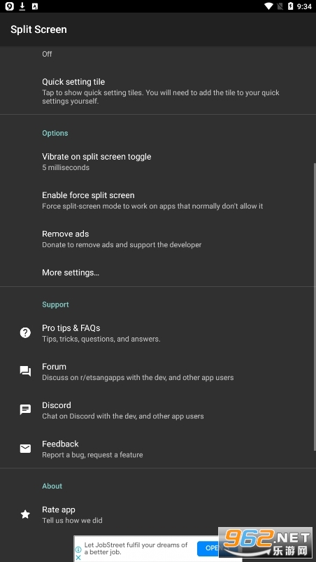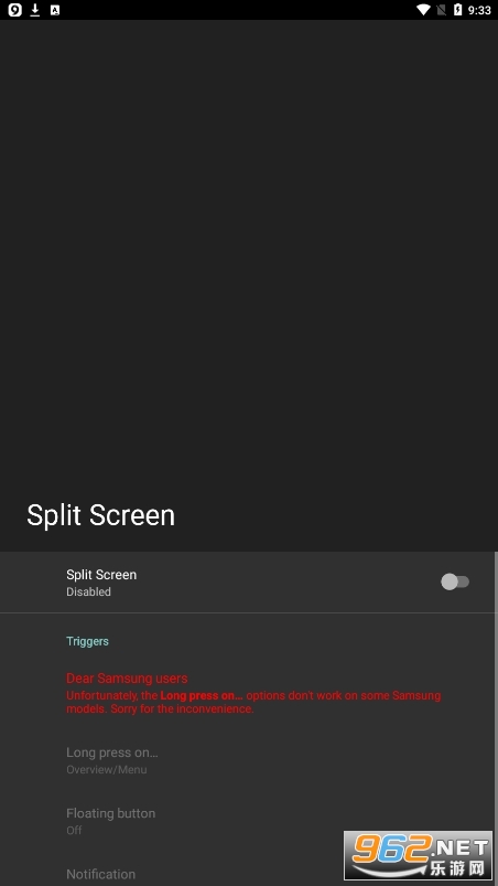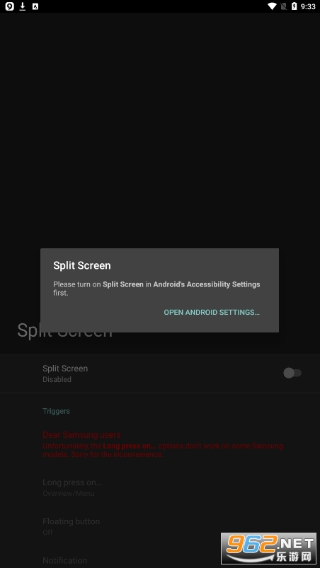 这个应用程序添加了可选的快捷方式来切换Android的分屏模式,如: